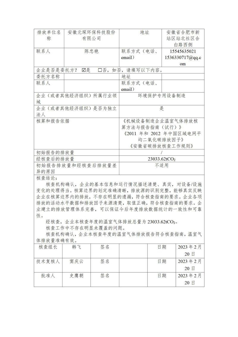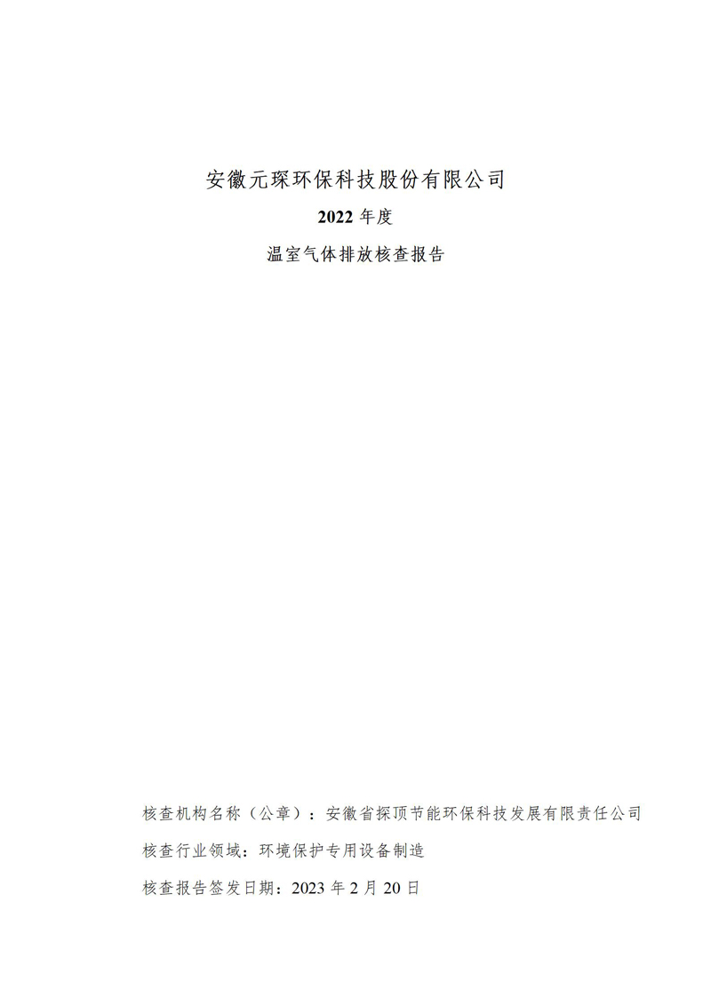 安徽乐鱼leyu环保科技股份有限公司2022年度温室气体排放核查报告