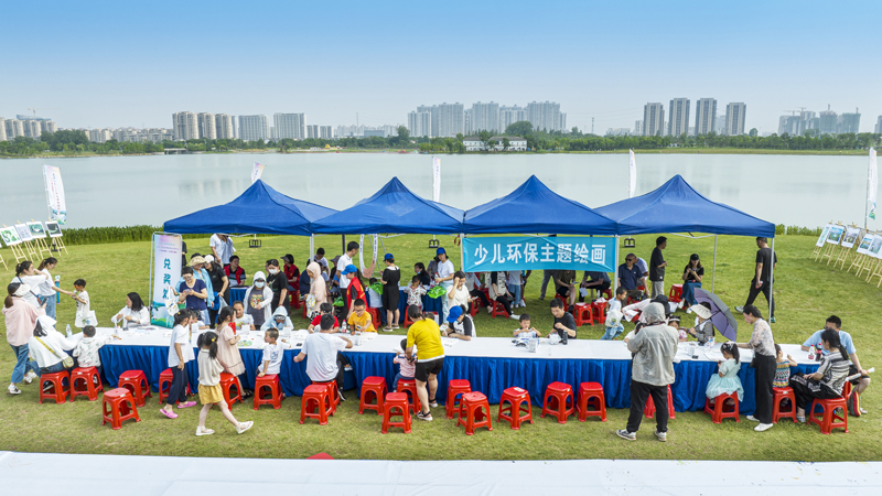 初夏时节,少荃湖畔,水清岸绿,万物并秀。在“六五环境日”到来之际,6月3日,以“建设人与自然和谐共生的现代化”为主题的新站高新区2023年六五环境日主场活动在少荃湖北岸举行。