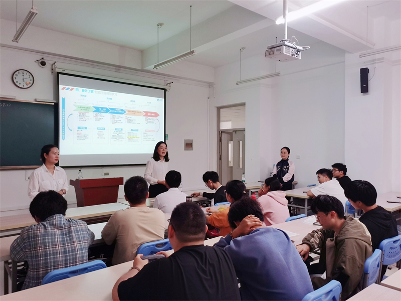 为帮助学生尽早厘清自我发展方向,第一期课程以HR进课堂的形式,由乐鱼leyu科技人力资源中心总监张利利,人才发展经理夏徽云担任讲师,将“乐鱼leyu班”开班宣讲与《大学生职业生涯规划》课程巧妙融合起来,为学生们开展全面且细致的学业与职业规划指导。